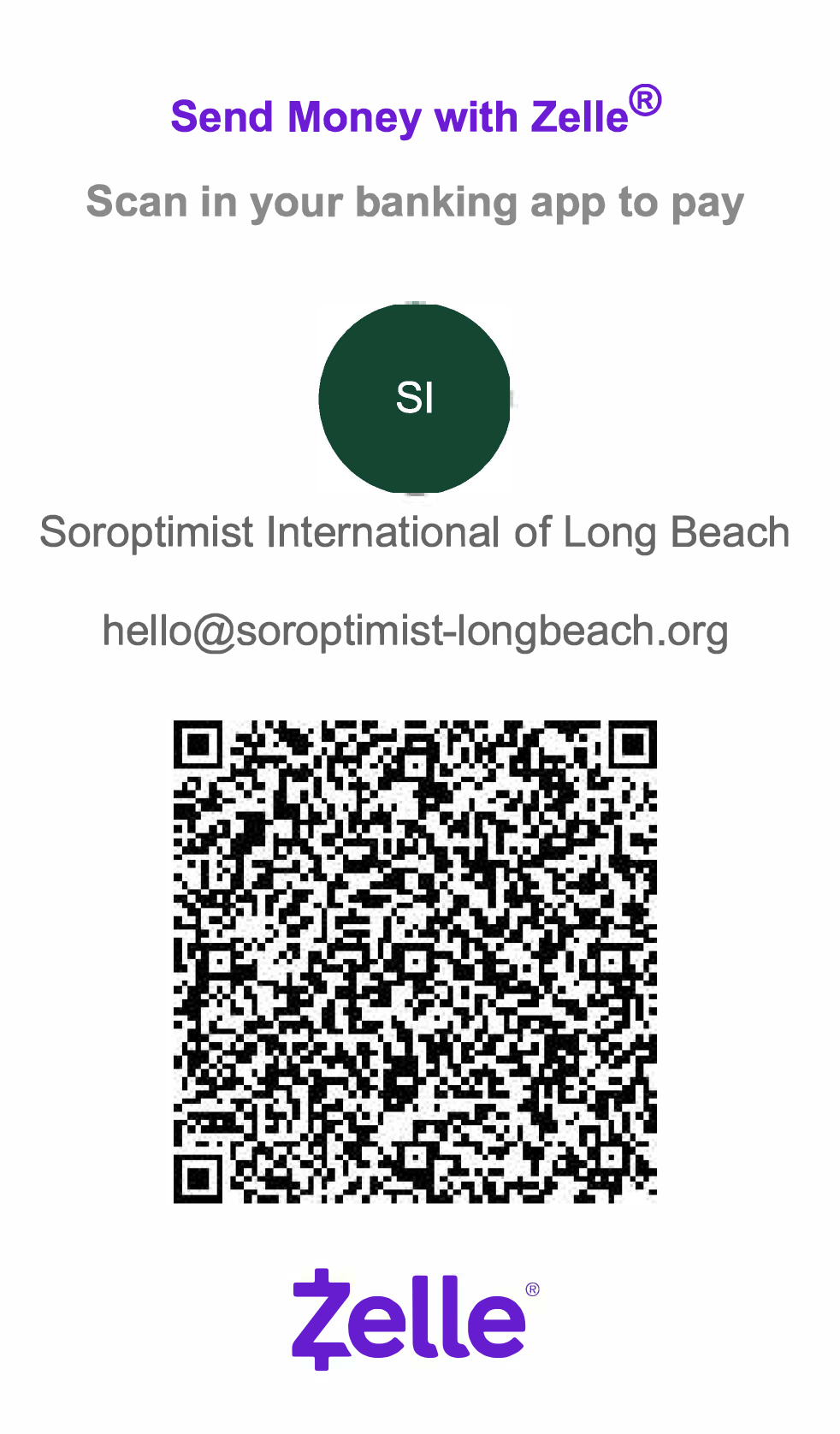 RSVP BY SATURDAY, FEB 28 to Judy Murphy. Pay by check or Zelle to hello@soroptimist-longbeach.org or scan the QR code below. $40 per person.